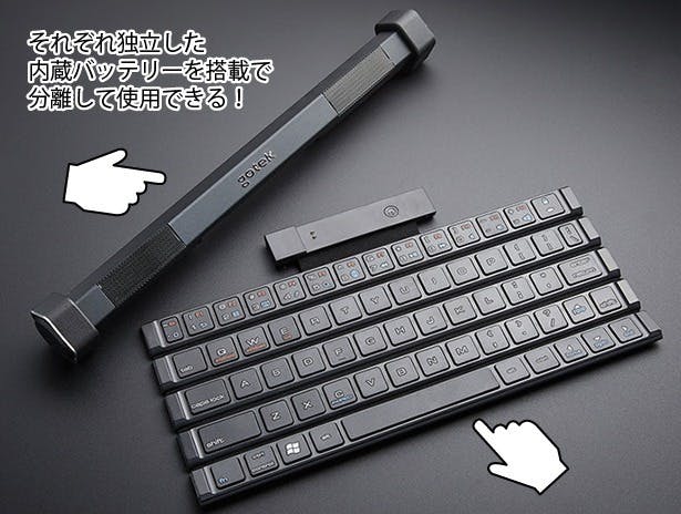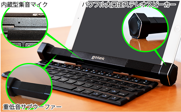 Gotypeはスピーカーとキーボードそれぞれに内臓バッテリーを搭載しているので分離して使用する事が出来ます。