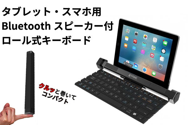 クルっとロール可能なキーボードとBluetoothスピーカーが1つになった持ち運び可能な2 in 1ガジェットです。