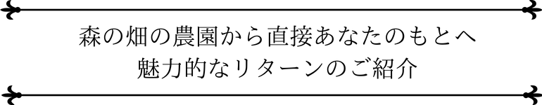 「おいしい」はみんなを幸せな気持ちにします。「おいしい」で笑顔やつながりが広がることが、私たち作り手にとって一番うれしいことです。おいしかったから遊びに来る、ブルーベリー摘みを楽しんだ子供が親になってまた来園する、「森の畑」のブルーベリー農園がみんなの思い出として語りつがれる、そんないつまでも楽しんでもらえる観光農園をめざしています。