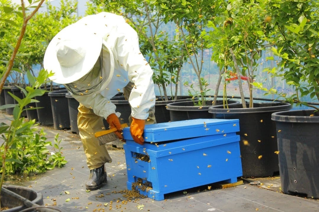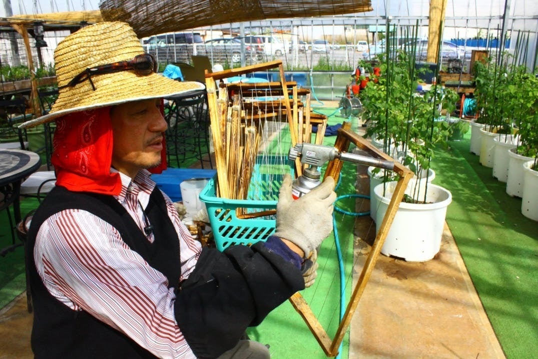 この時期は、農園で飼育しているミツバチたちが活発に活動を始める時期です。ミツバチの木箱を殺菌消毒するために、ガスバーナーでひとつひとつ丁寧に炙(あぶ)っていきます。