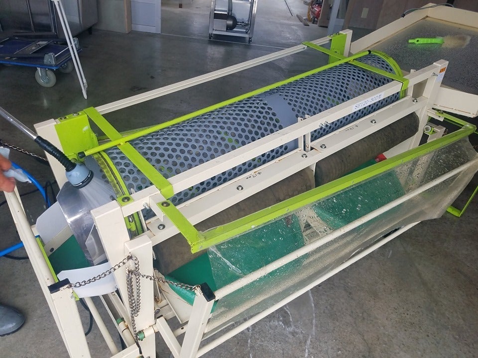 また、生果実の大きさを選別する選果機と、手作りのふるいも洗いました↓