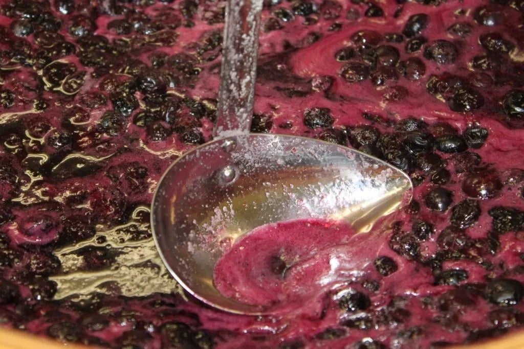 次は、アクを取る作業です。雑味をなくすべくこまめにアクをとり、果実や果汁を取ってしまわないように気をつけながら、アクをすくいます。さらに10分煮詰めます。