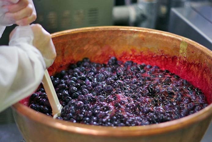 冷凍したブルーベリーを取り出したら、ジャムの製造に取り掛かります。殺菌消毒の施された衛生状態の良い調理室にて熟練した調理師が製造にあたります。