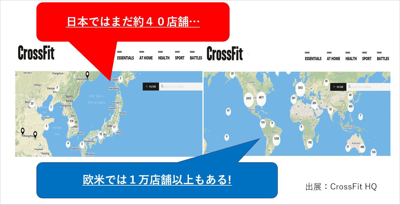 欧米だけでなく、東京、関西をはじめ、日本中でクロスフィットのジムが増えています。