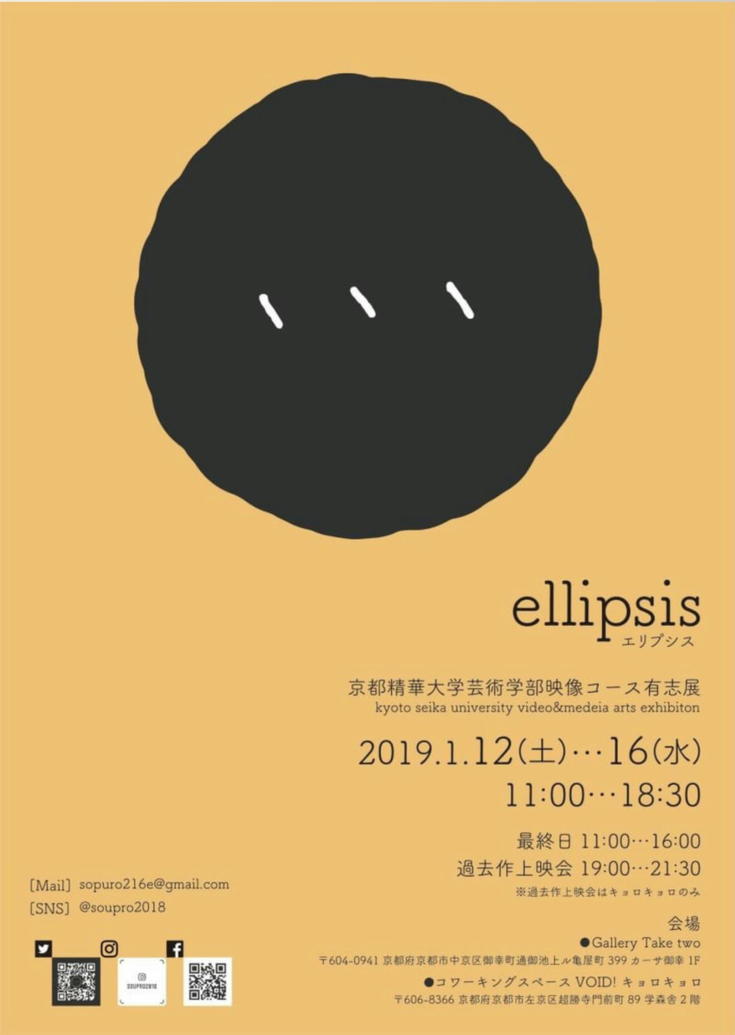 京都精華大学芸術学部映像コース 2018 年度 3回生による有志展 ellipsis