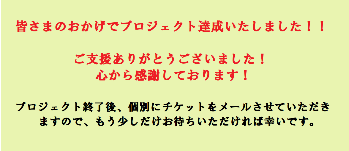 プロジェクト終了3日前の昨日、皆さまのご支援のおかげで、何とか2回目の挑戦も達成することができました。本当に、本当にありがとうございます。