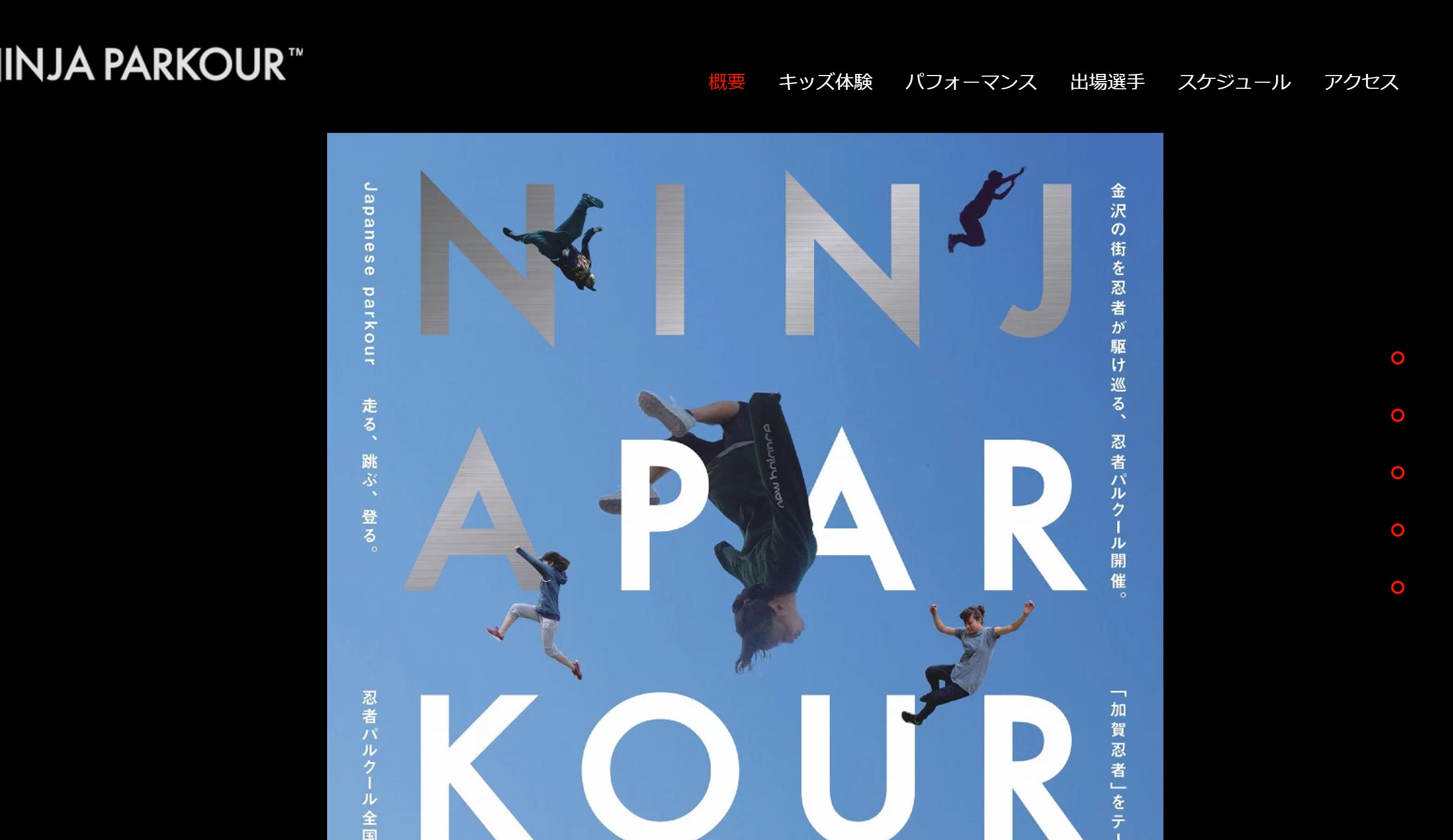 石川県金沢市で開催されている北陸地域最大の(忍者)パルクールイベント「NINJA PARKOUR」こちらは忍者パルクールという名目でスポーツ(競技)パルクールと、キッズのパルクール体験をメインに実施しております。ちなみにこのイベントはわたし石沢の会社「SENDAI X TRAIN」が金沢の大学生がつくった会社「サムライ金沢」と共に作り上げたイベントなんです(☜自慢w)