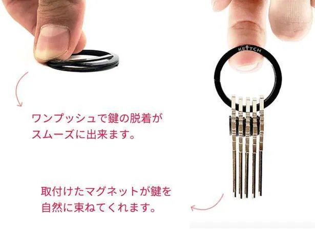 ❶KEYTCHのキーリングは、ストレスなく簡単に鍵の着脱が可能!