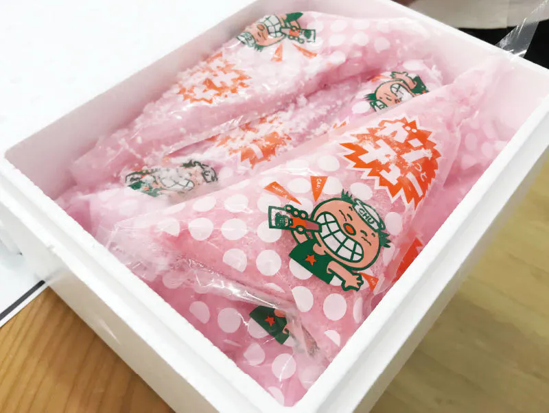 「ガリッとチュー」は糸こんにゃく工場の工程を見る中で父が発案。日本初!のカキ氷スイーツとして、昭和38年(1963年) に 第一号 袋入りカキ氷 が誕生しました。予め味付けをして甘くした蜜氷を作り、カキ氷のように砕いて袋詰めした氷菓子として1日1,000個以上を造っていました。予め味付けをすることで、氷同士がくっつかず、サラサラとした触感にできたことが大人気の秘訣かと思っています。大量生産には向かない製法ですが、こだわっているところです。