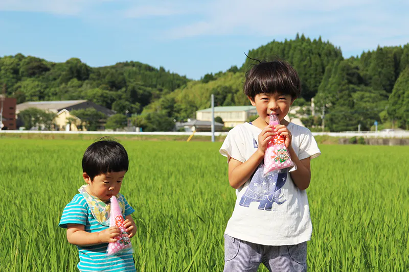 夏の暑い時、稲刈りの時、スポーツの後など、欠かせない冷菓として、全ての天草人に親しまれ、愛されていました。多くの天草出身の方は、島外に出て、「ガリっとチュー」が売っていないこと、三角形の冷菓が無いことにビックリされるとお話を聞くほどでした。