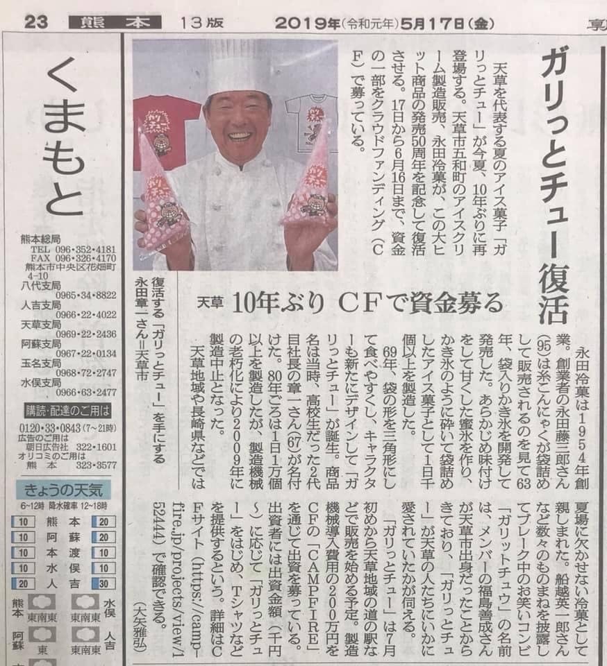 【 新聞見たよ〜の嬉しい声】 昨日5/18の熊日新聞にもガリっとチュー