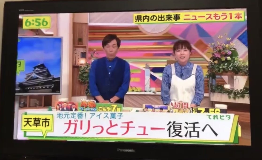 「ガリっとチュー」は誕生以来、当社を支えてくれていた屋台骨ともいえる商品であり、天草の方々にも愛していただいていた商品です。世界遺産登録より1周年、天草出身アーティストの初コンサートも実現する今、お笑いコンビの命名の元にもなったこのアイス菓子を復刻することで、天草のみなさんにこの暑い中を乗り越える元気の源を提供し、さらなる天草を盛り上げたい!と思っています。みなさまのお力をぜひいただければ幸いです。