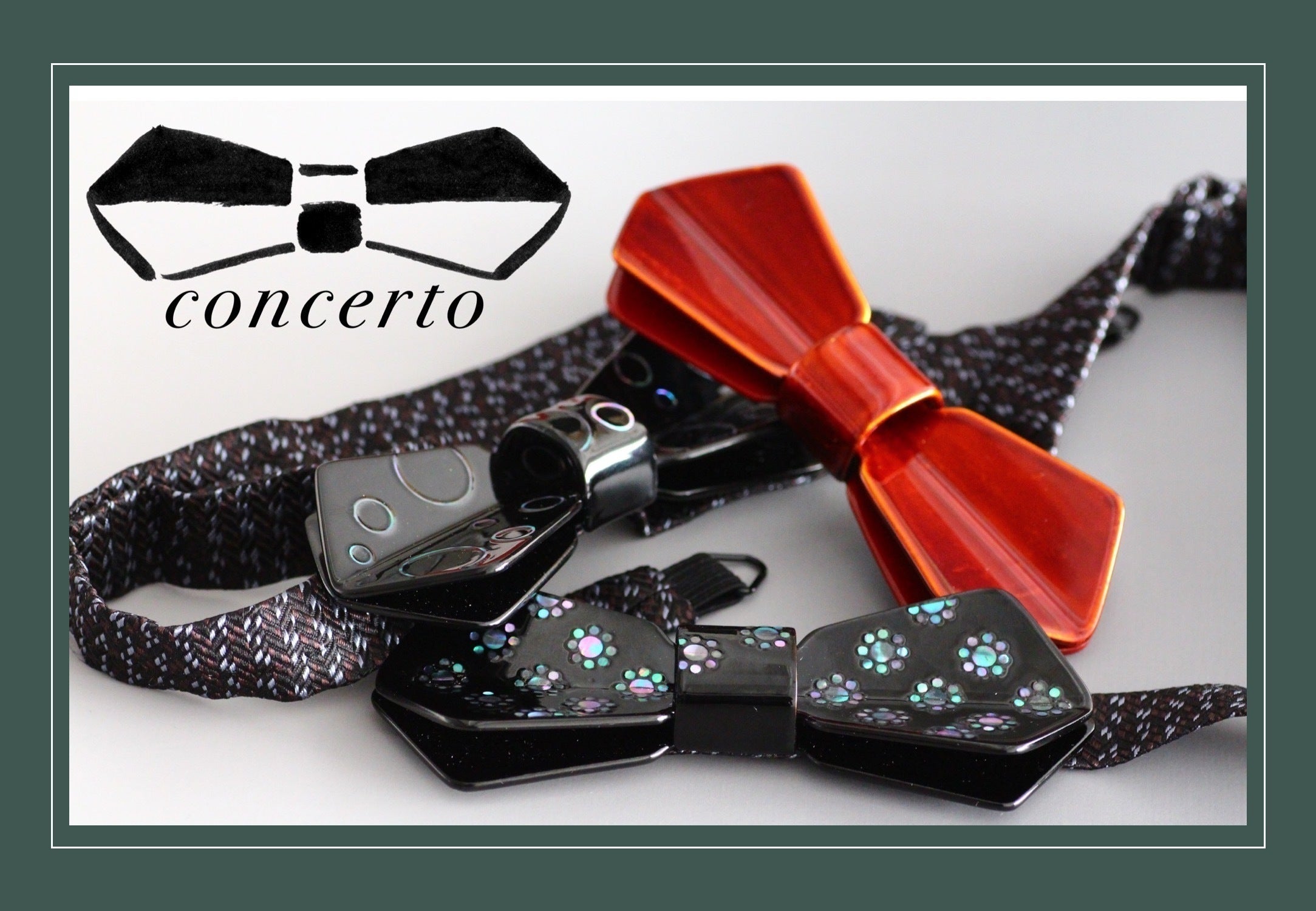 この度、高岡漆器と西陣織のストラップを組み合せた「蝶ネクタイ」と、日本を代表する伝統工芸プロダクトである「すずがみ」を組み合わせた「バレッタ」のCONCERTOシリーズをリリースすることになりました。