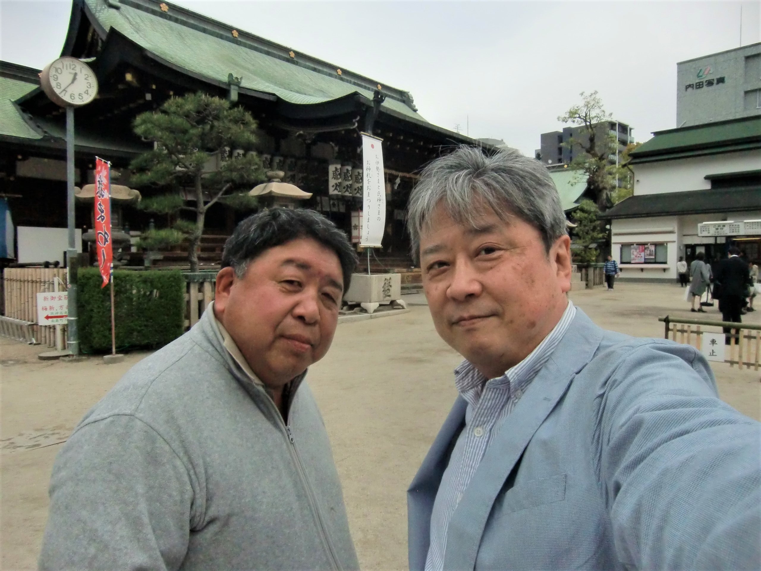 左から:木下清仁(きよひと) 小西一郎 2017年春頃、私の勤め先に近い大阪天満宮さんの境内で撮影