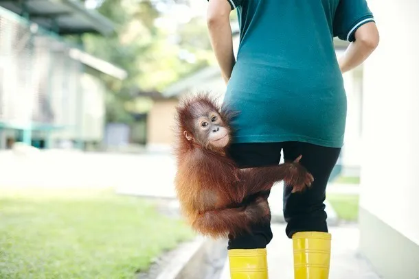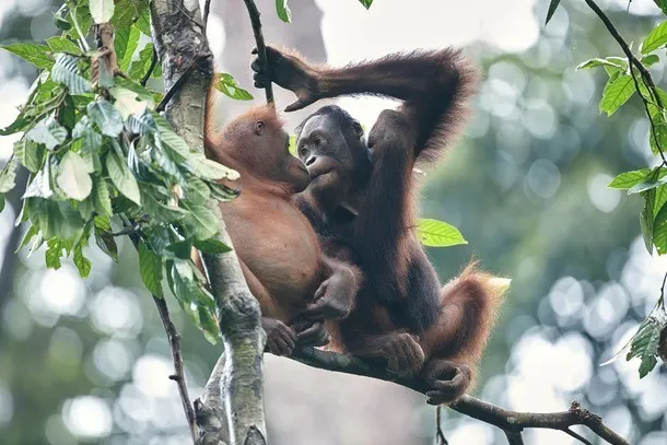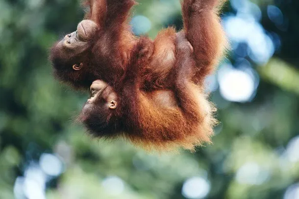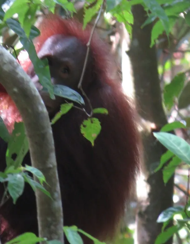 ボルネオオランウータンは、インドネシアのカリマンタン(ボルネオ)島に散在的に分布していて、主に低地の湿地林や丘陵地の熱帯雨林、二次林などに生息し、果実の多いところを好む絶滅危惧種。体はゴリラに次いで大きい類人猿です。