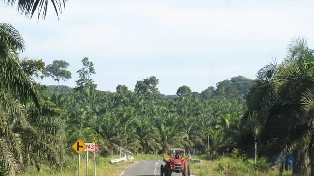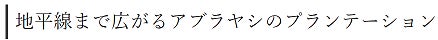 ボルネオでは、普段私たちが何気なく口にしている、もしくは使っているもののほとんどに含まれている「アブラヤシ」のプランテーションが広がっていました(写真下)。