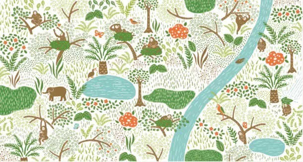 絶滅危惧種であるオランウータンの一生を描いたオリジナルエコーヒーカップを作ります。