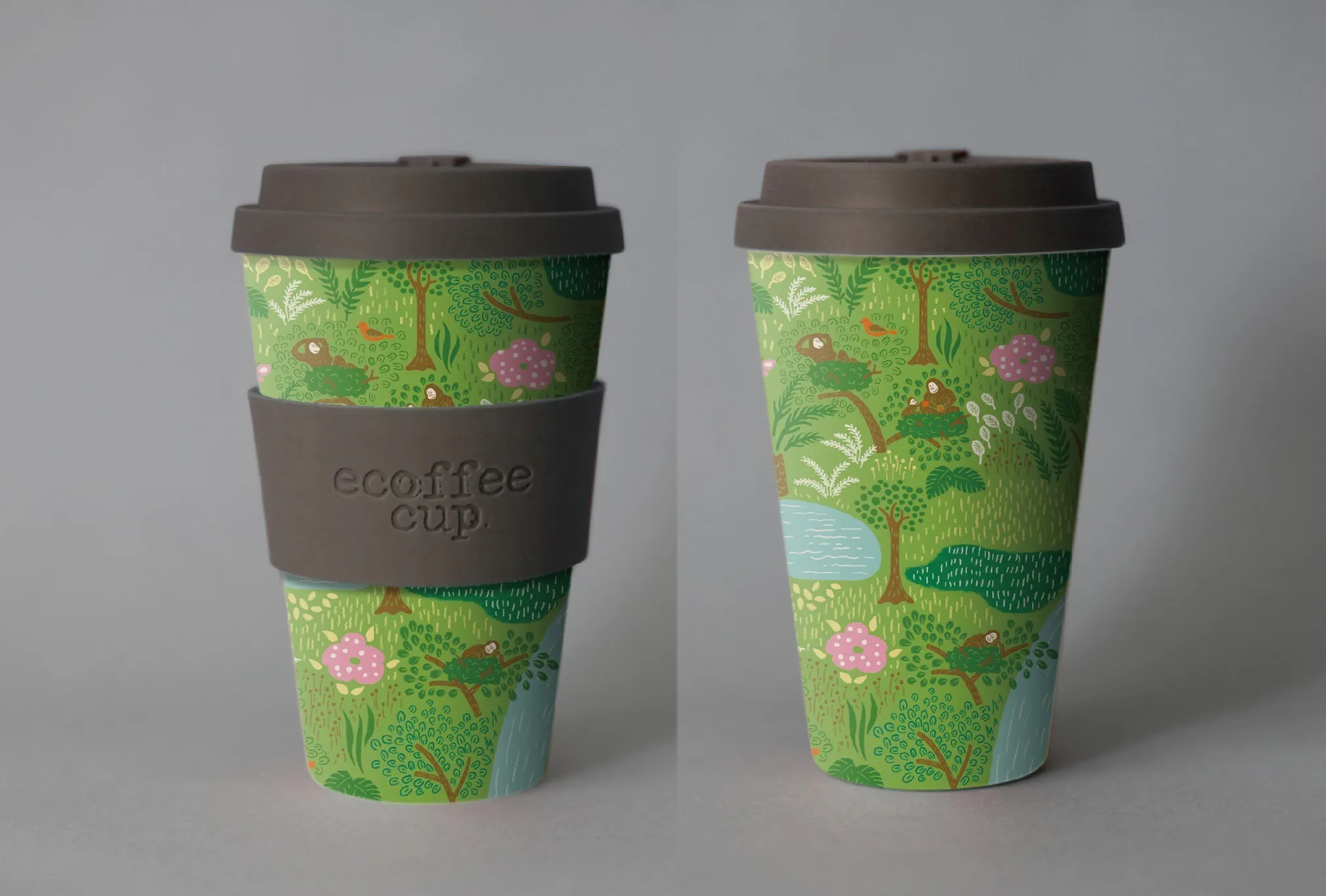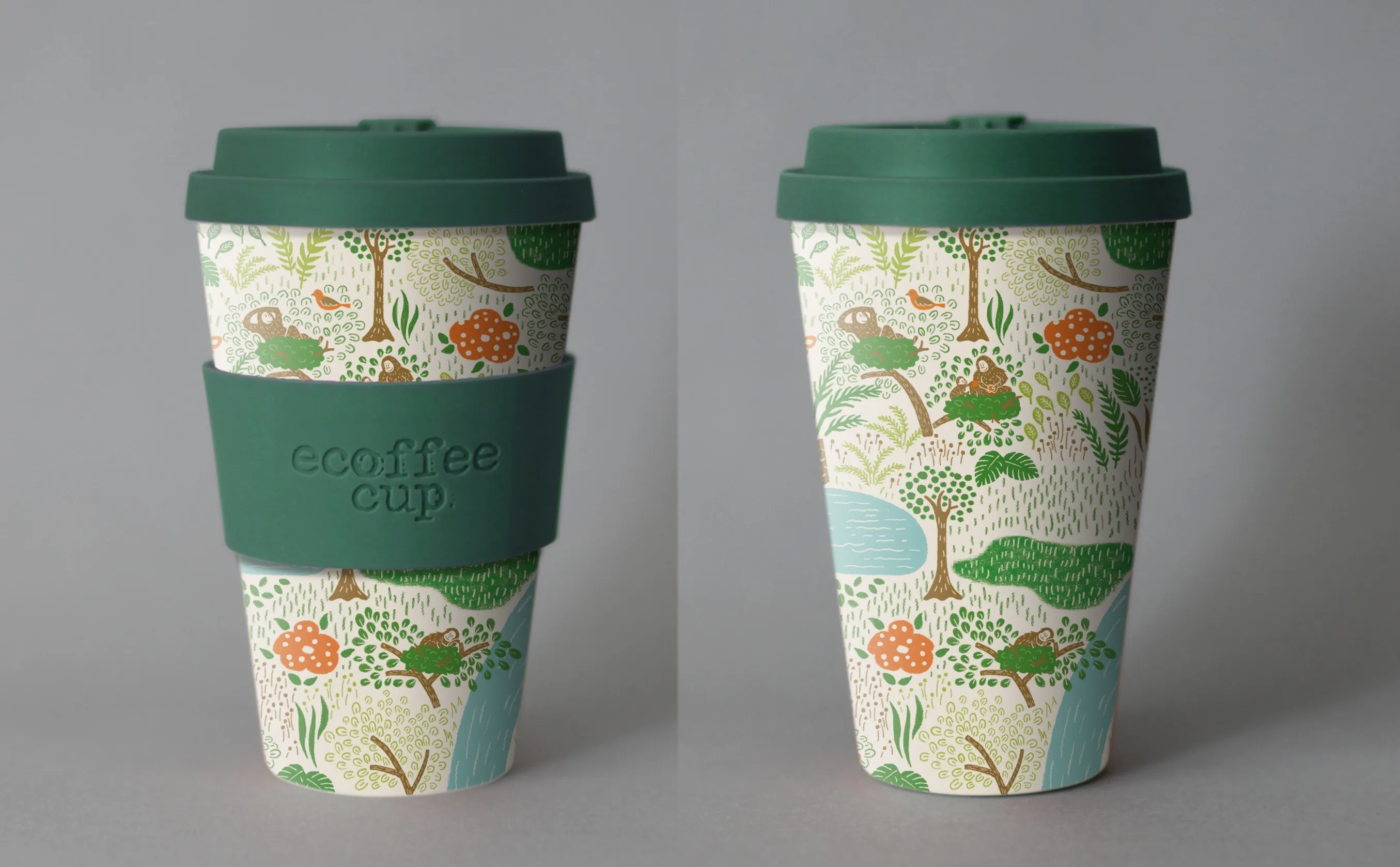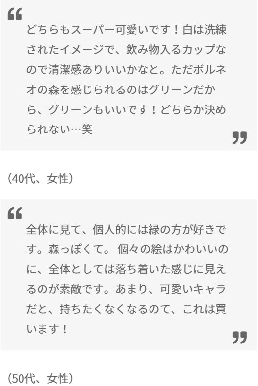 そこで、「エコ&おしゃれなエコーヒーカップを通して、ボルネオ島で起きていることを知ってもらえないだろうか?」と思い、絶滅危惧種のオランウータンやボルネオの森をイメージした、オリジナルエコーヒーカップを作ることを考え、このプロジェクトを立ち上げました。