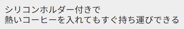 ちょうど手で持つところにシリコンホルダーがあるため、熱いコーヒーを入れてもすぐに持ち運べます。また、グリップもしっかりしていて、安定して持つことができます。
