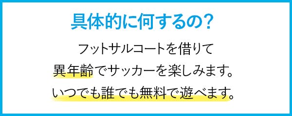 それから子ども達が無料でサッカーを楽しめる場所を提供するべく活動してきましたが、1人での活動は資金的にも限界があり、この度プロジェクトを立ち上げました。