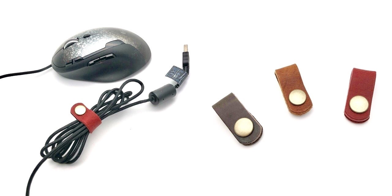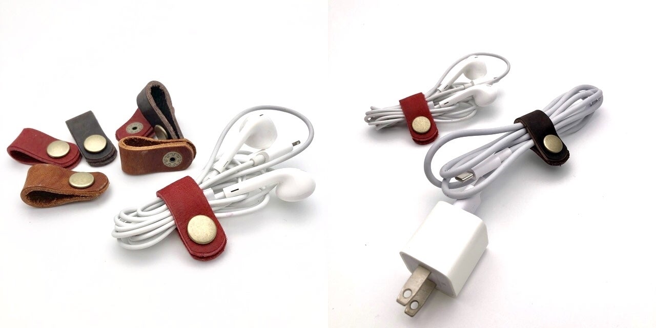 ①コード類全般の整理ができる、いくつあっても困らないレザークリップ