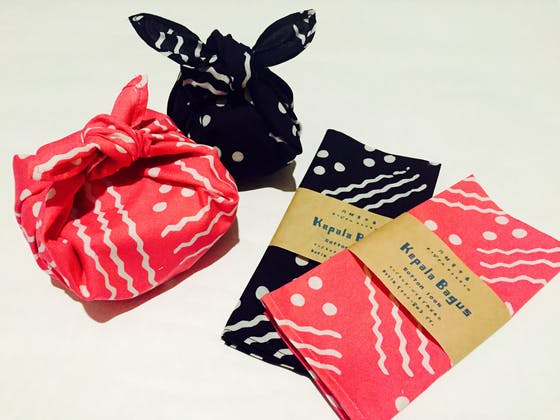 ミニハンカチは、川村亘平斎がバリ島で作ってきたバティック(ろうけつ染め)にて作った、オリジナルテキスタイルのものです。
