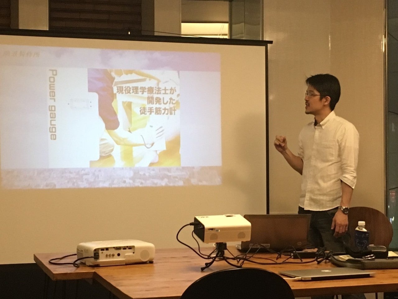 デモンストレーション開催!北千住を中心に活動するT.I.P.研修会第8回のトピックスとしてデモンストレーションの場を提供していただきました!話したい事が沢山ありましたが短い時間でしたので要点を絞ってご説明させていただきました。実演もさせていただきました!実際に実物があるとご興味をもっていただけやすいようです。質問は使い方に関するものが中心でした。ベースはMMTなのでやはりPT・OTの方に使っていただくか、それらの方に指導を受けるのが望ましいと考えています。