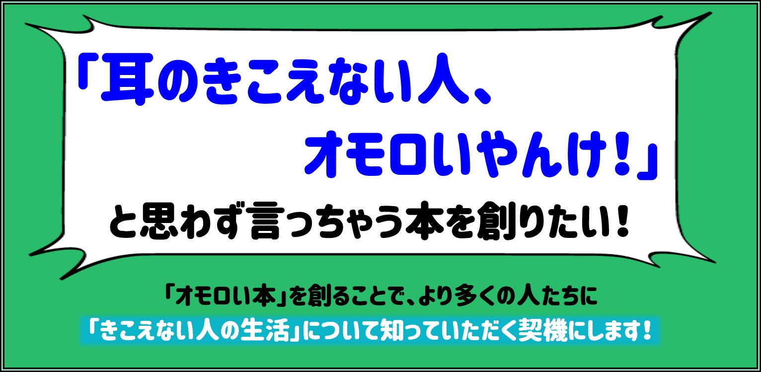 そんな心のバリアを少しでも壊せるように、「きこえない人の生活」についてオモロく、ププッと笑って理解していただけるような本を創るための資金を募ります。