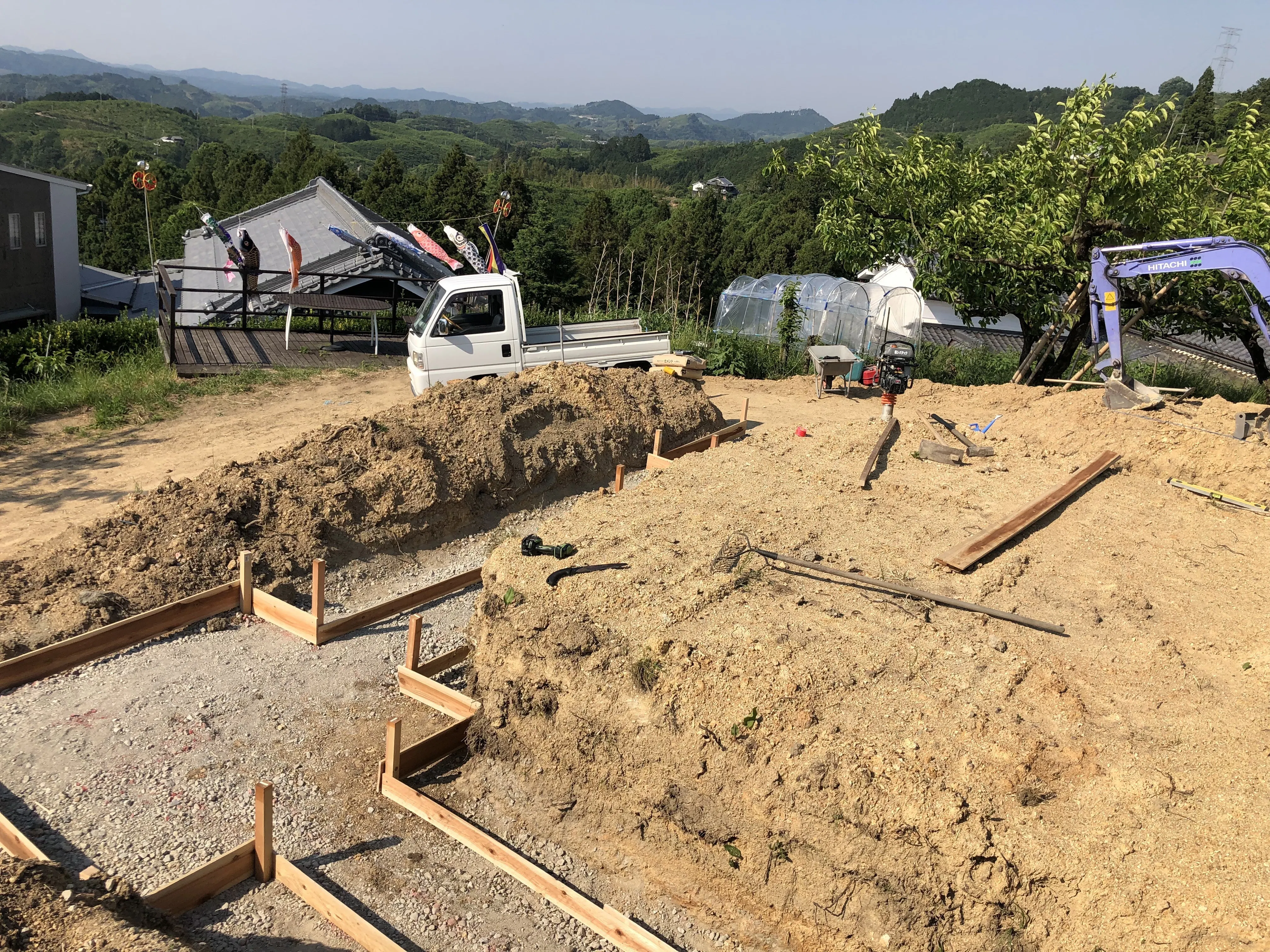 (写真は、基礎工事の「捨てコンうち」の準備状況です。)