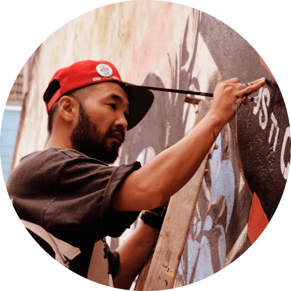 ストリートアートを基本とし情熱的で生命力溢れるタッチで見る者の魂に触れる作品を描く。そのスタイルは常に進化し、過去と未来や、静と動、正義と悪など、相反するものの共存をテーマに作品を生み出している。世界20ヵ国以上を旅し、各国のストリートアートシーンにて壁画を残し、その名が広まる。また、即興で繰り広げられるダイナミックなライブペインティングは世界中からのオファーも絶えず多くの観客を魅了する。