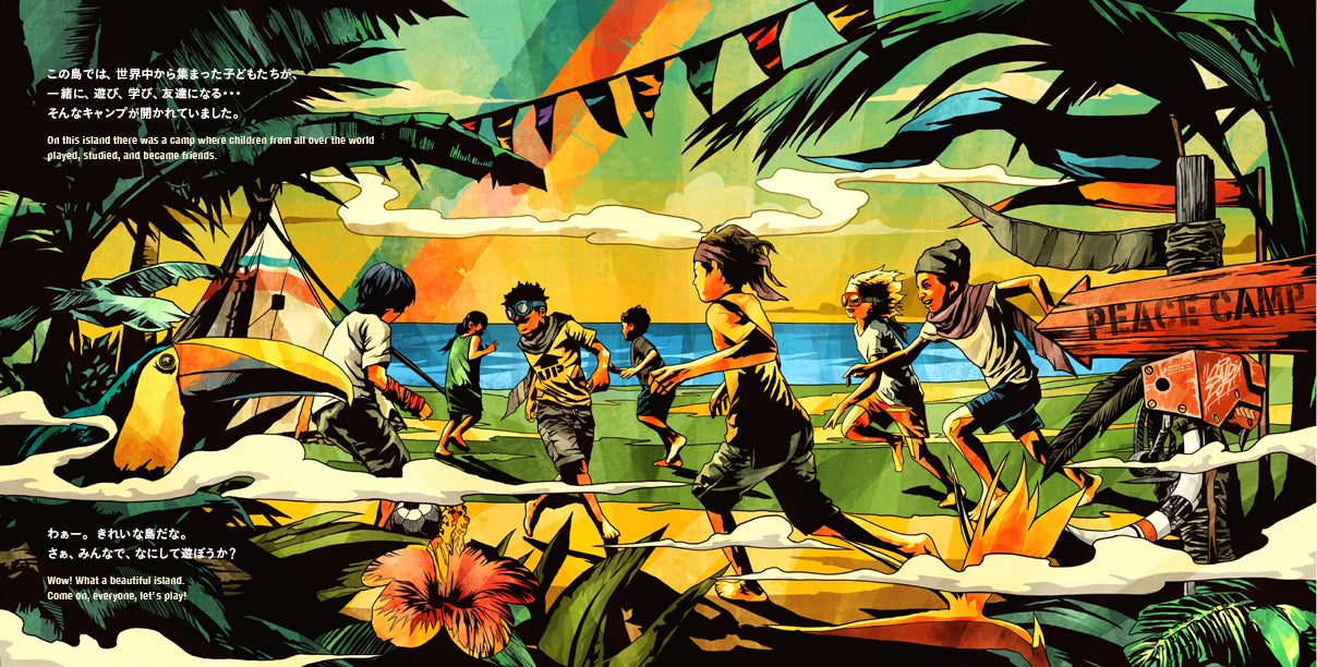大きな海の真ん中にポツンと浮かぶ美しい島。この島では、世界中から集まった子どもたちが、一緒に、遊び、学び、友達になる……そんなキャンプが開かれていました。