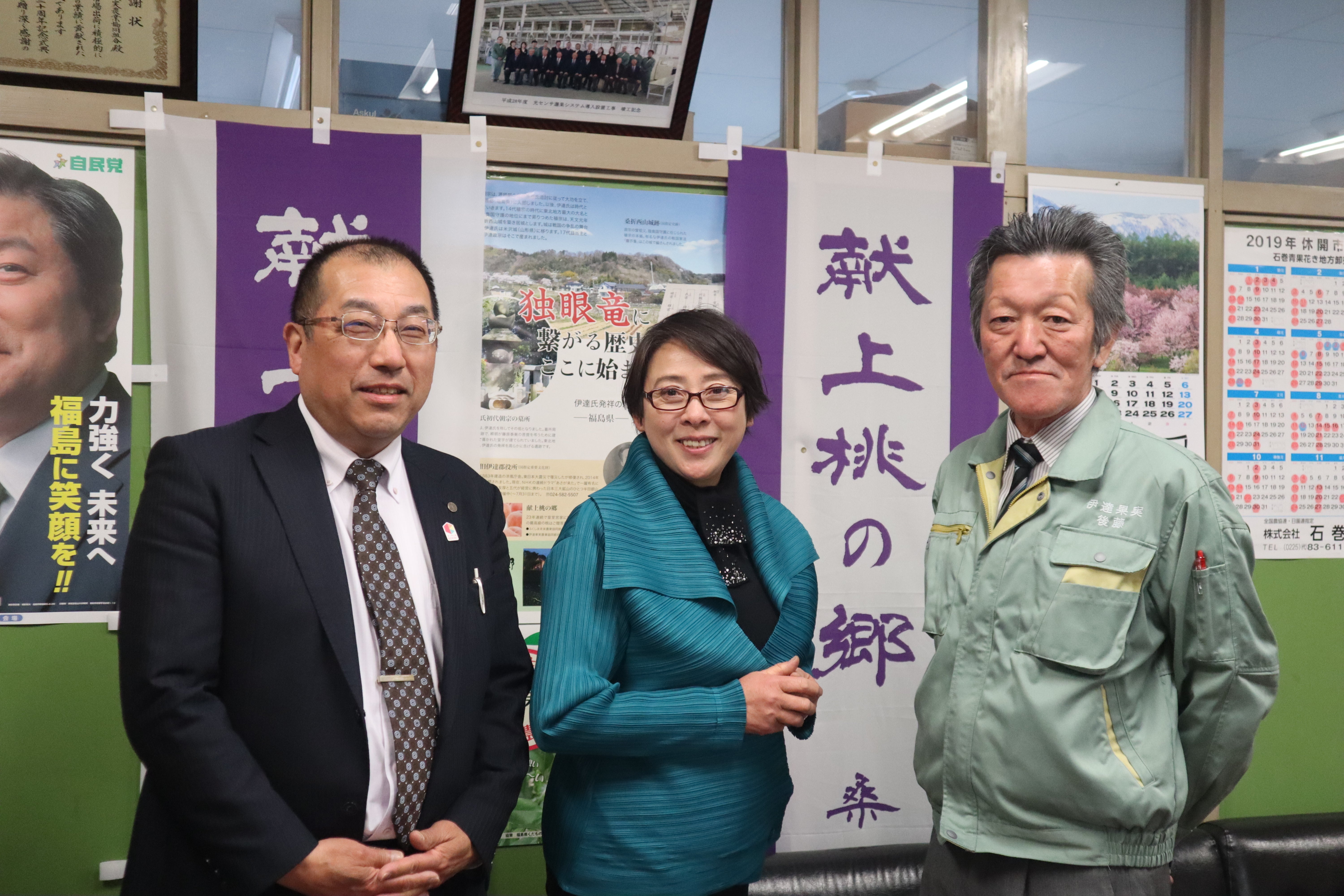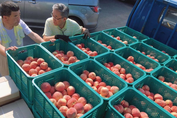 桑折町の伊達果実農業協同組合の佐藤邦雄組合長をはじめみなさまに、ブランド桃の”あかつき”を600キロも集めていただきました。