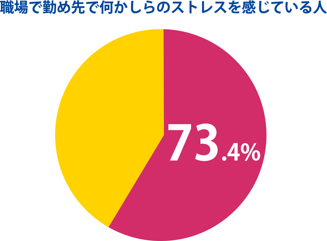 チューリッヒ生命のアンケート調査では73.4%が勤め先で何かしらのストレスを感じていると答えています。