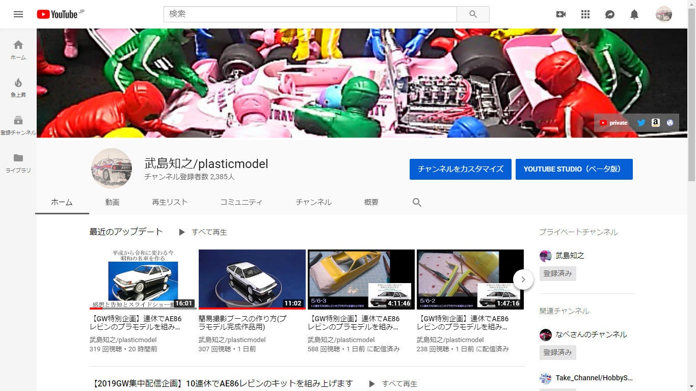 YouTubeチャンネル「武島知之/plasticmodel」を運営しております 武島 知之 と申します。