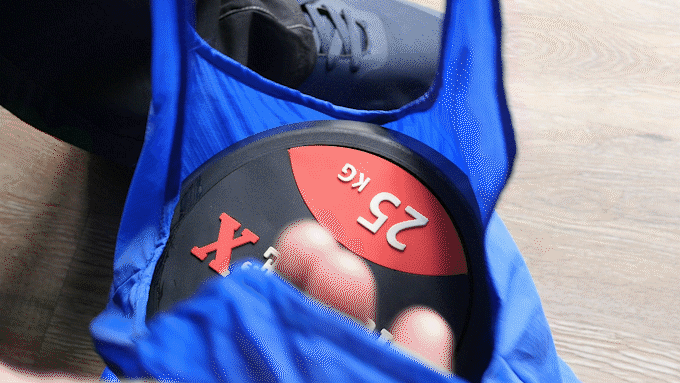 このように25kgの重りを入れても袋が破れることはありません。