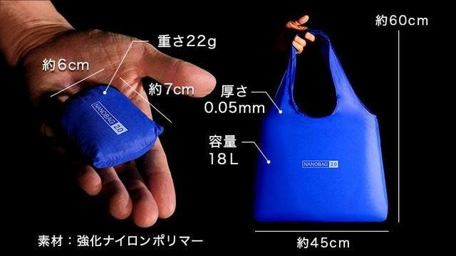 Nanobag2.0・NanoPackは軽さ・コンパクト・丈夫さ・撥水性の全てを満たした新しいエコバッグ ・セカンドバッグになります。