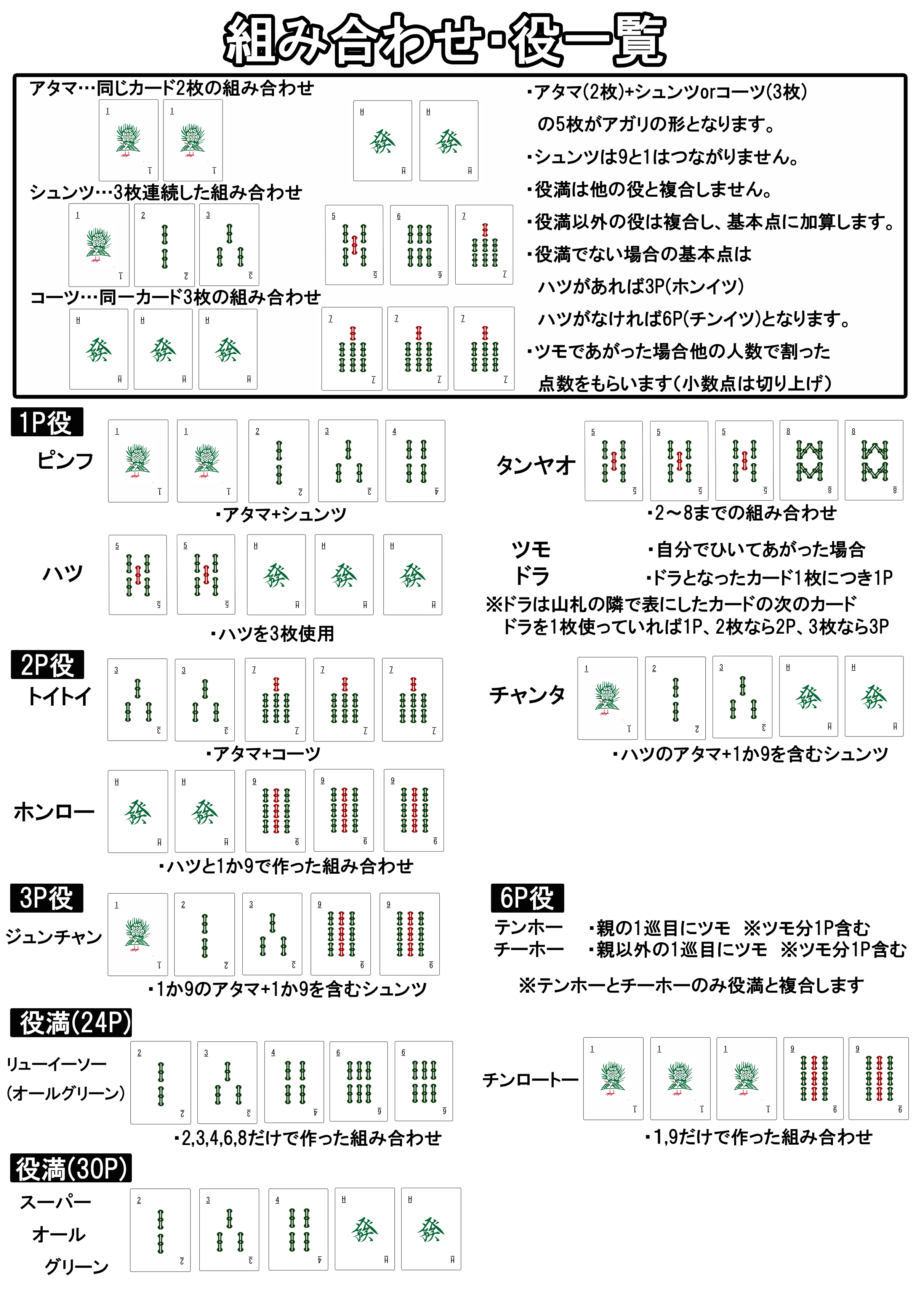 今回変わった点としては役に「ドラ」と「テンホー」、「チーホー」が追加されました。
