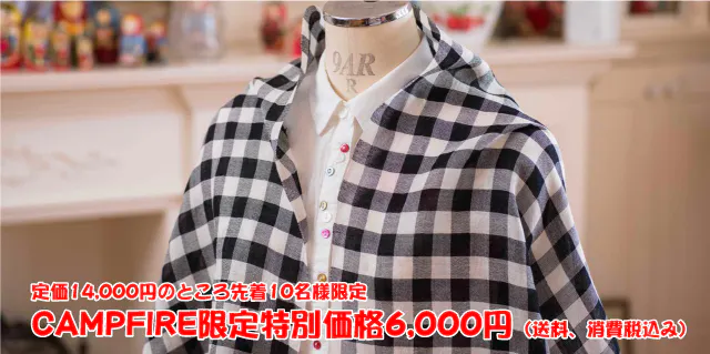 今回は4色のブロックチェック柄を作りました。通常価格14,000円のところ、今回はCampfire限定特別価格として各色10枚限定送料税込で6,000円とさせていただきました!10枚のご声援が終了した以降は8,500円となります。