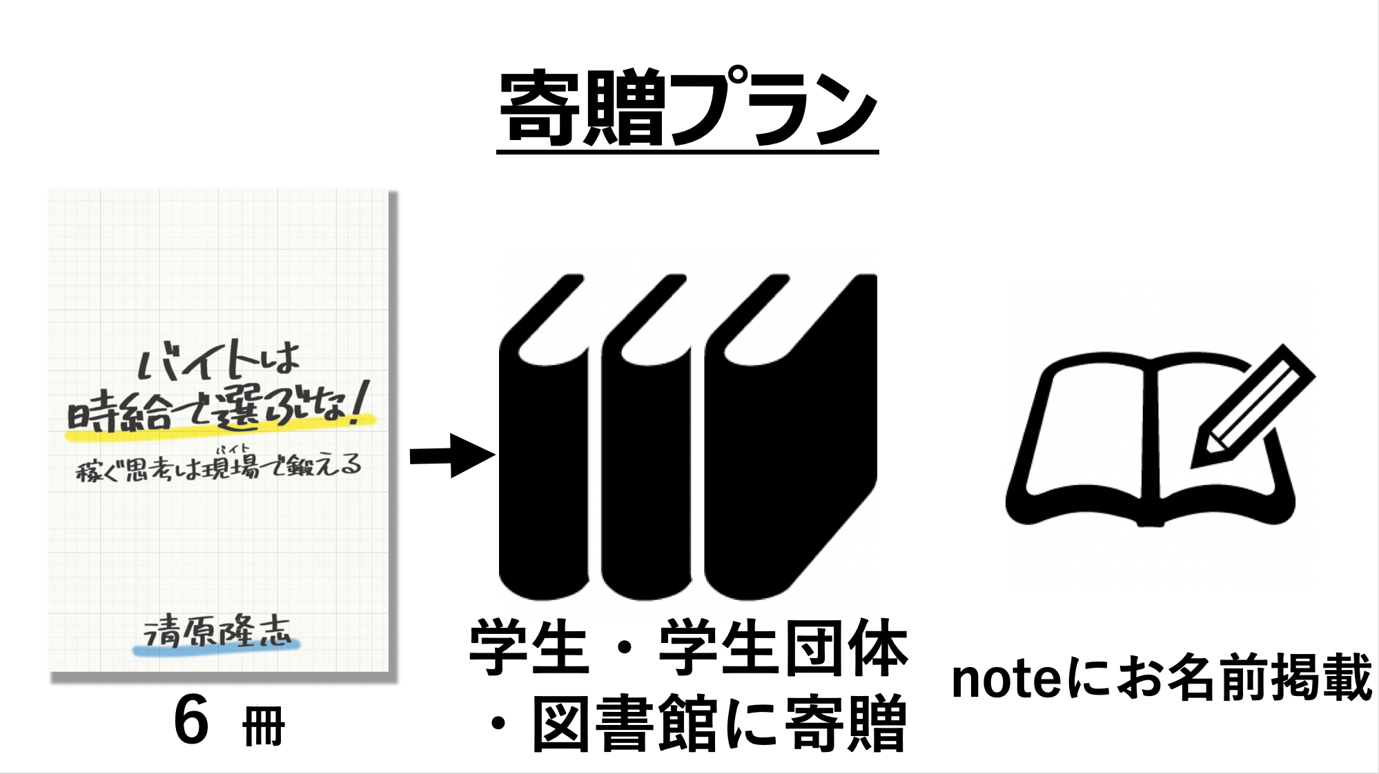 本6冊をTwitterで募集して応募のあった大学生、学生団体、公共図書館に寄贈します。