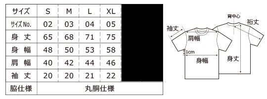 サイズ:着丈 / 身巾 / 肩巾 / 袖丈(cm)