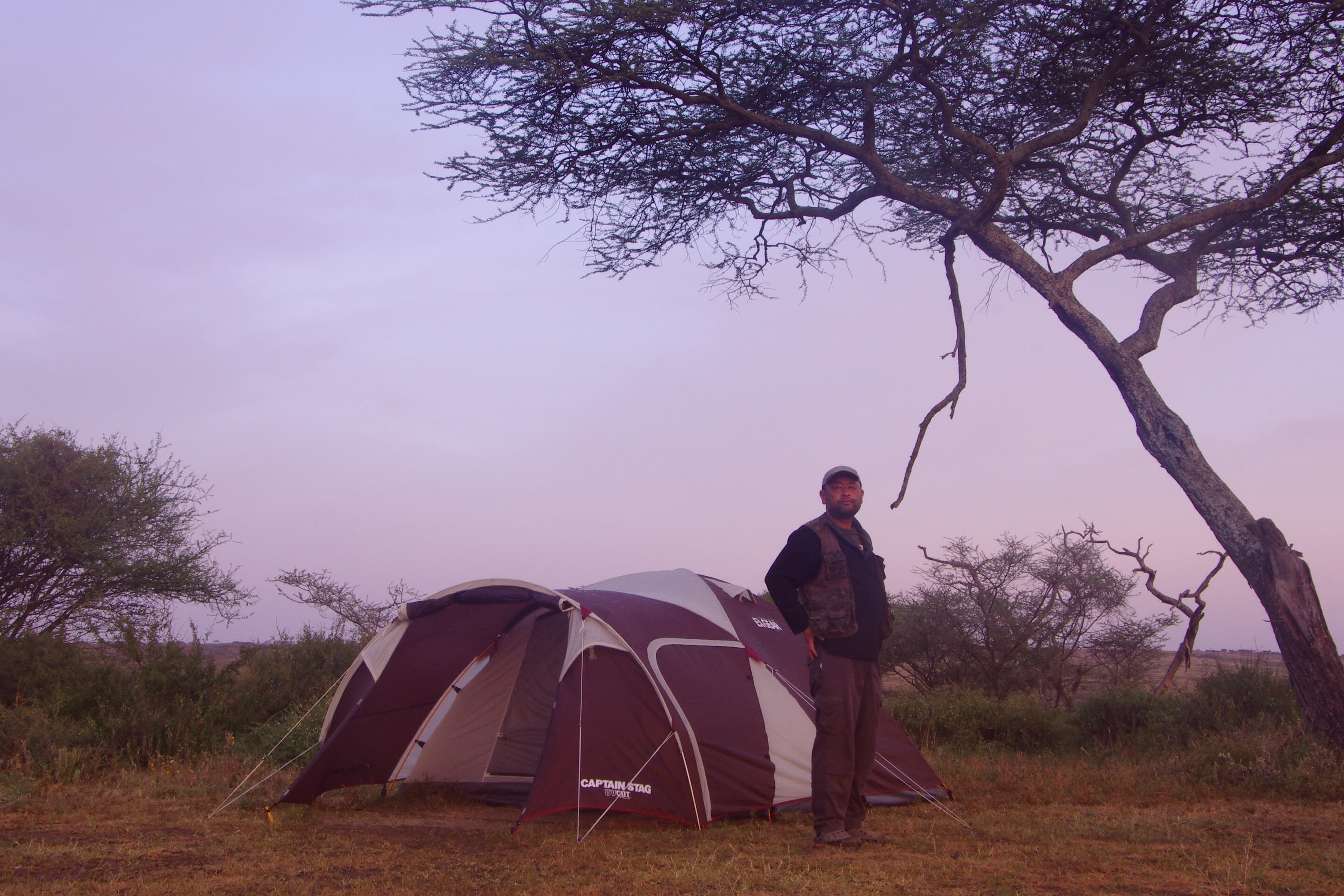 自分を野生へ回帰させるため、翌年からサバンナにテントを張って、キャンプ生活をしながら撮影を始めた。いわゆるサファリロッジには泊まらない。