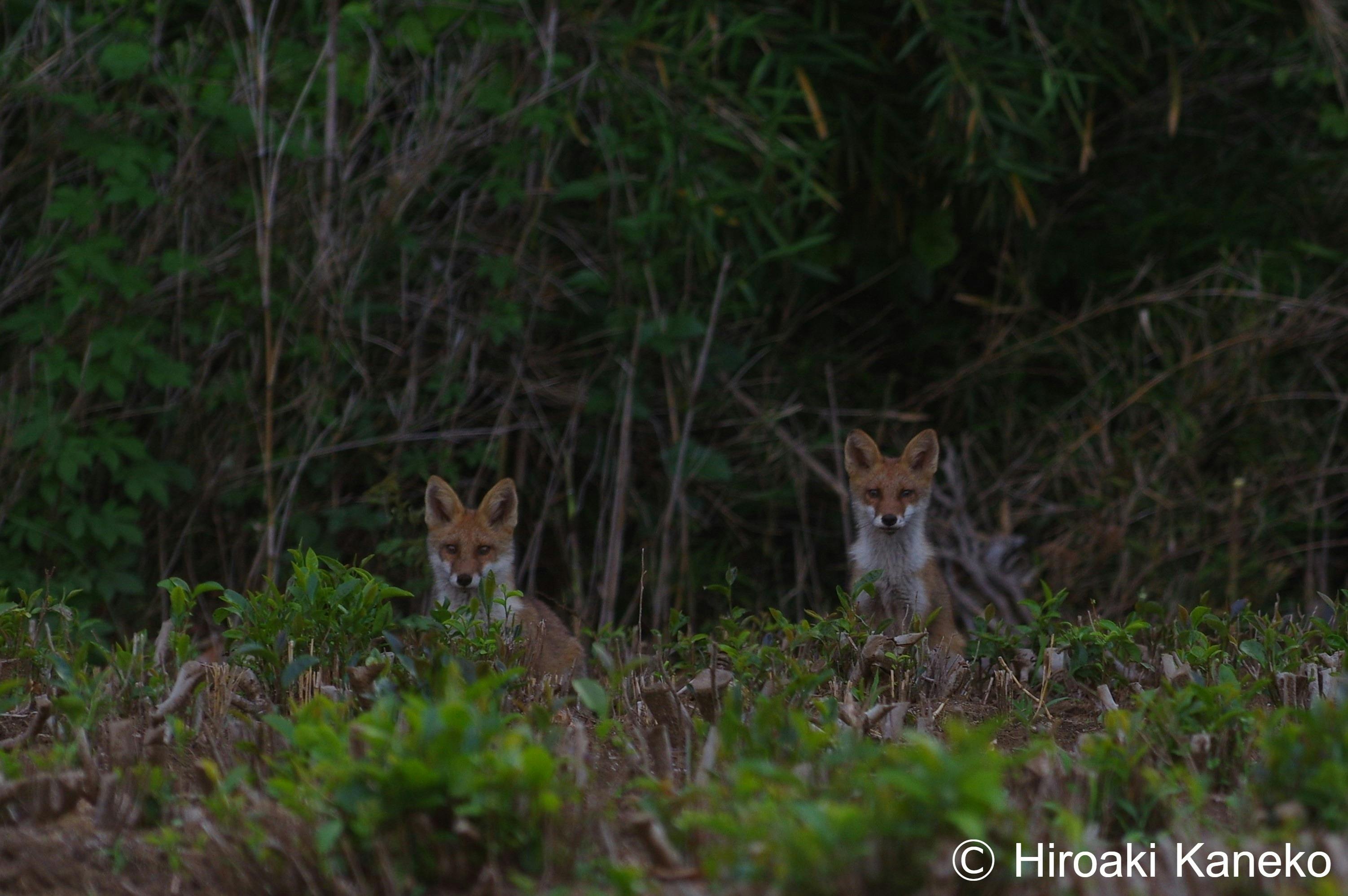 キツネ達は林の中に消えた。