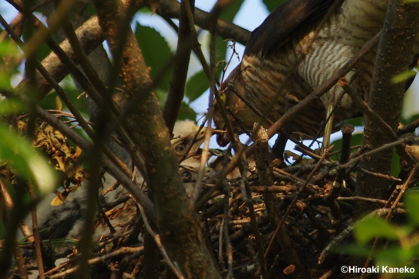 そして、メスはその声を聞いて、巣から出てきて餌を頂く。