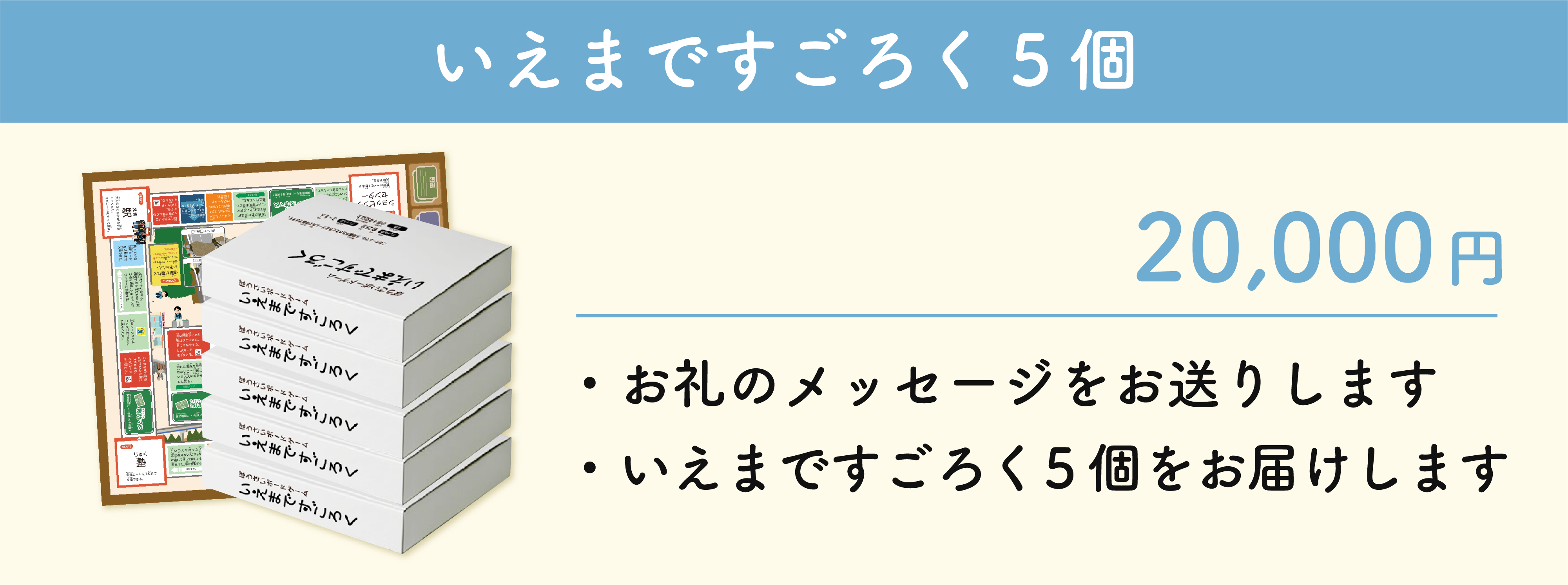 リターンは個人向けと企業・団体向けをご用意いたしました。ご支援頂きました資金は、全額すごろくの作成費用・梱包などの発送作業費用に使用させて頂きます。