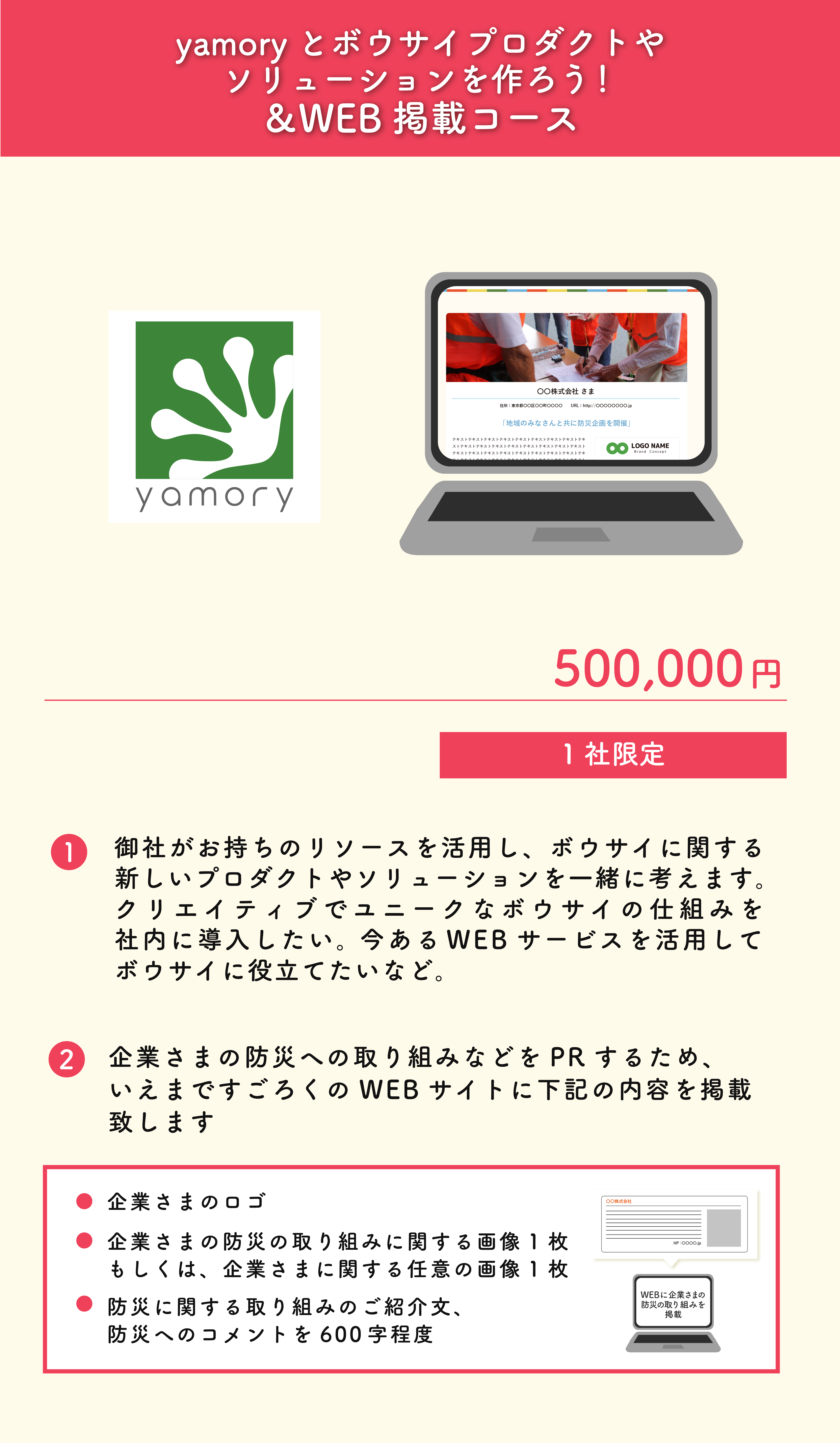 2019/07/01 13:35みなさま、こんにちは。yamory スタッフの本多です。本日、さらに5つのリターンが登場しました!!すごろくの盤面にあなたの似顔絵が掲載されるコースなど、ユニークなリターンも、、詳細はプロジェクトページからご覧ください。①あなたの似顔絵がすごろくに「似顔絵掲載コース(10名限定)」 ②御社の取り組みをPR「WEB掲載コース(10社限定)」③yamory代表の岡本ナオトがボウサイや事例を紹介「代表・岡本ナオト講演&WEB掲載コース(3社限定)」 ④yamoryが御社のボウサイ商品をブランディング「ブランディング&WEB掲載コース(1社限定)」 ⑤御社のリソースを活用した新しいボウサイを提案!「yamoryとボウサイプロダクトやソリューションを作ろう!&WEB掲載コース(1社限定)」 もっと見る