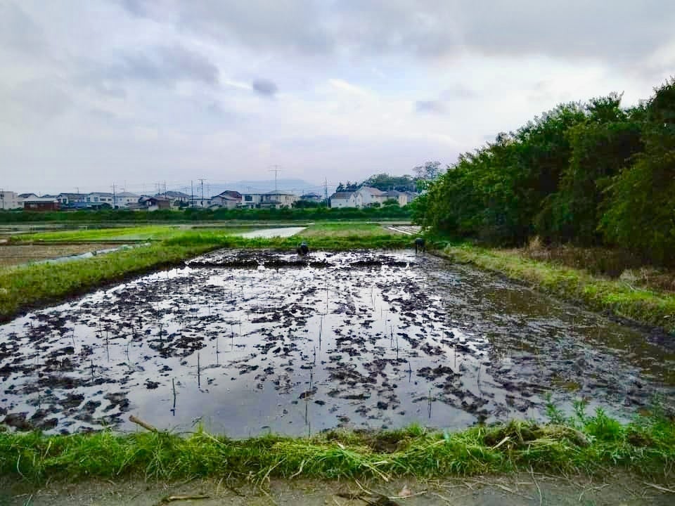 (何匹かヒルを発見したため)長靴で代掻きの如く土と水を馴染ませていく。