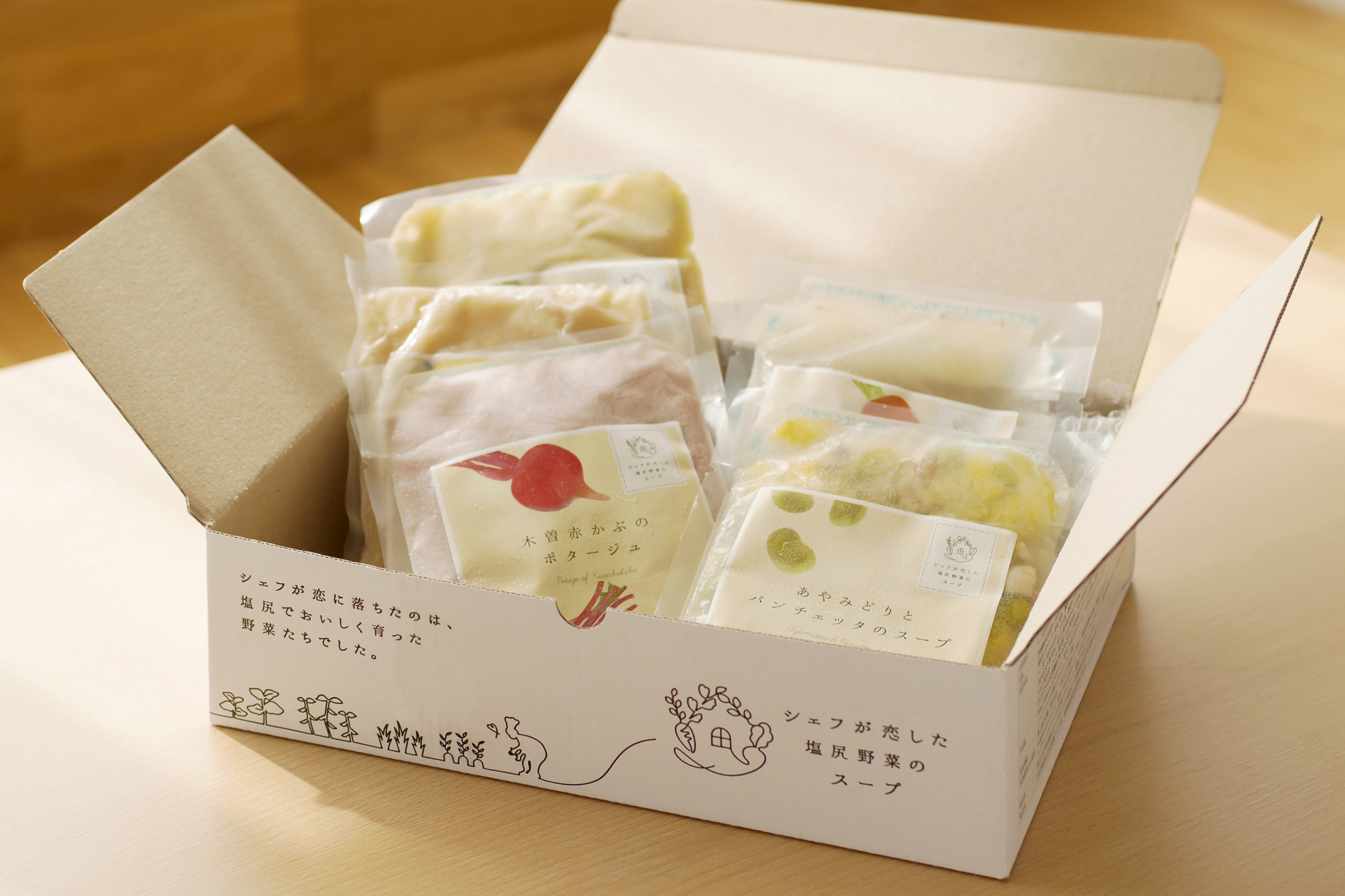 冬セット購入しました。どれもとても優しい味で、シェフと関わった皆さんの温かい気持ちがこもっていると感じました。特に松本一本ねぎのスープは絶品でした。ネギのポタージュって、ノーマークでしたがねぎってこんなにおいしくなるんですね。