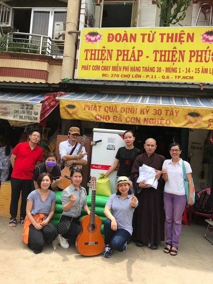 ギター2本は私のものを、もう使わないのでベトナムに持っていって寄付しました。このお寺はロンアンに孤児院を作っていて、そこに住む中学生ぐらいの子どもたちにプレゼントです。