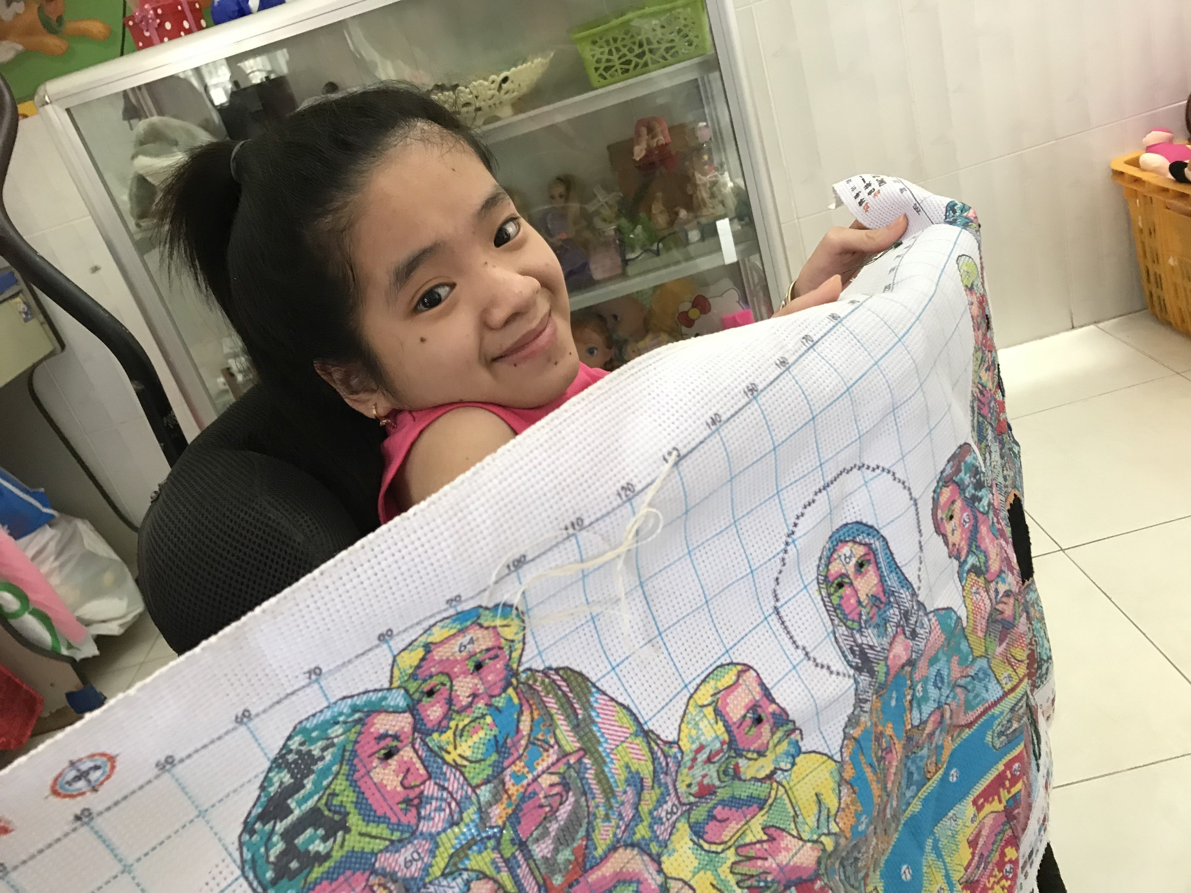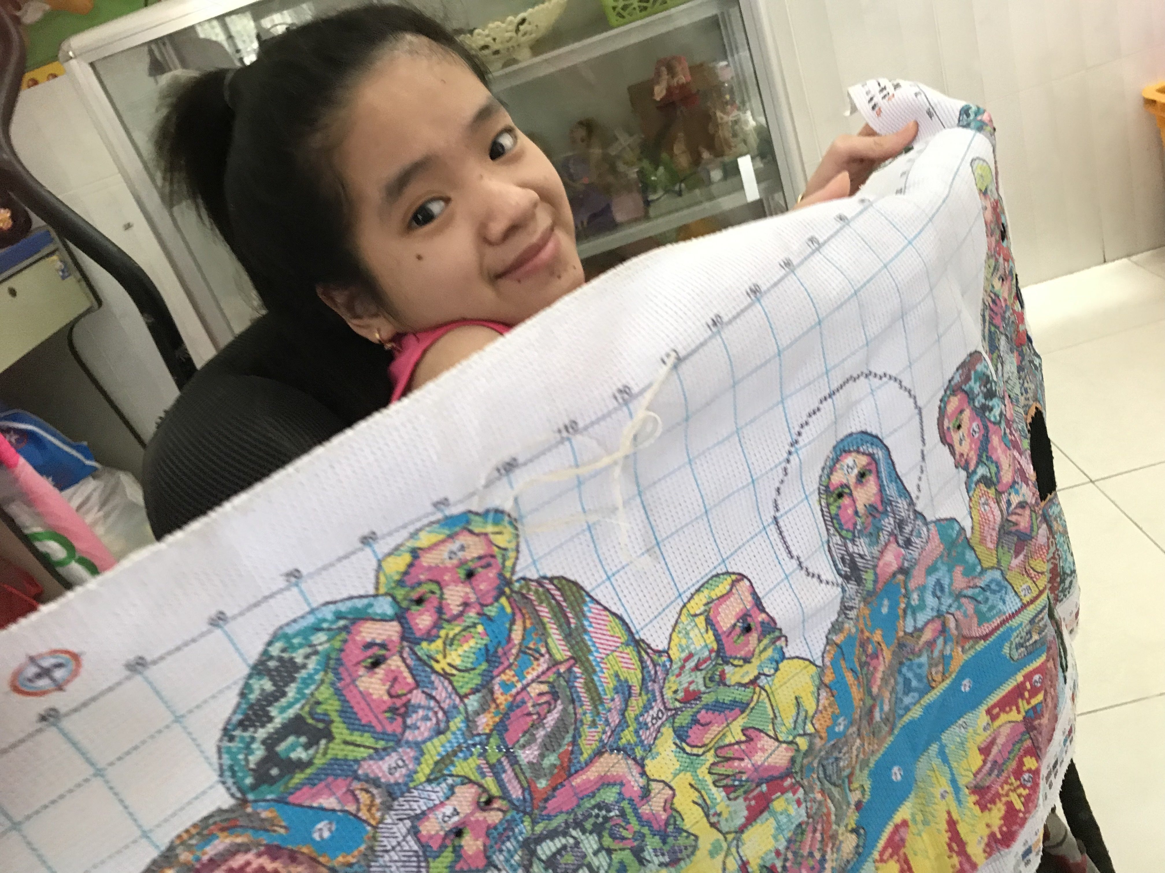 ここで育った彼女は刺繍が得意です。何年も地道にコツコツ作り上げます。