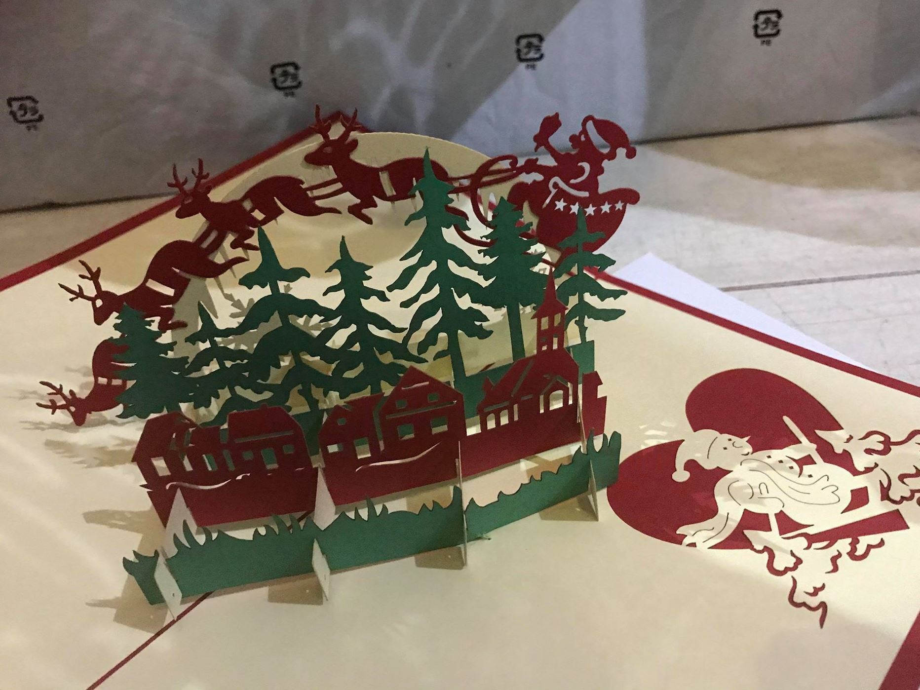 これらのグリーディングカードは、閉じるといたって普通のカードですが、開くと立体絵本みたいになります。